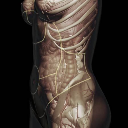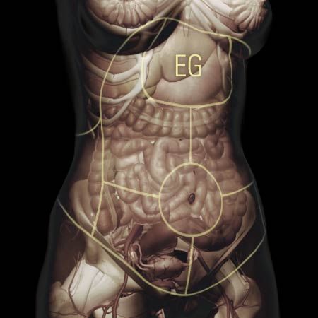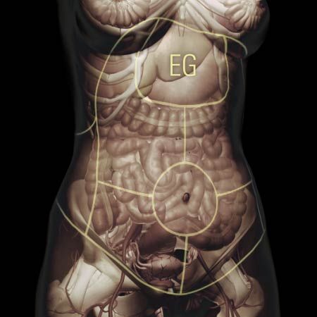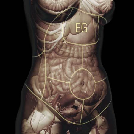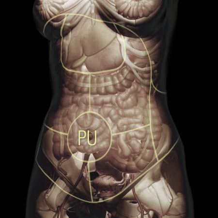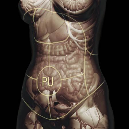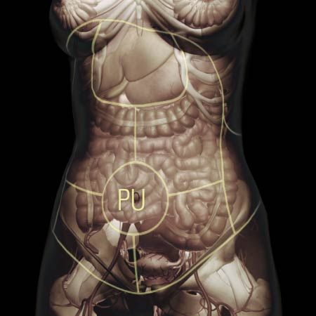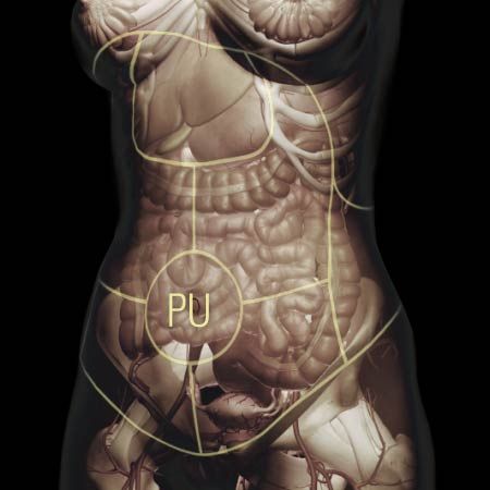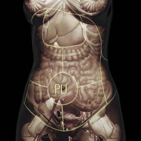 Dull, throbbing sensation in the abdomen or sensation of fullness