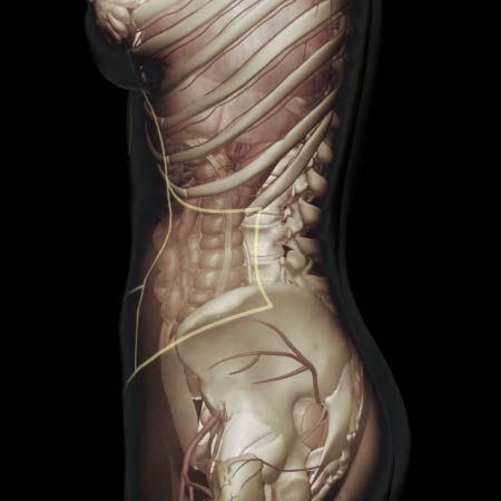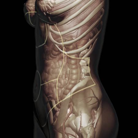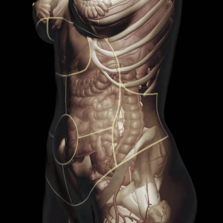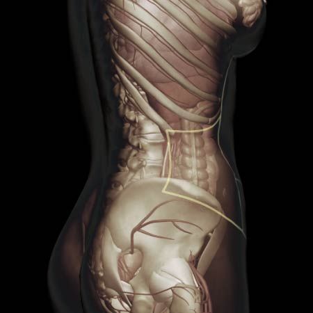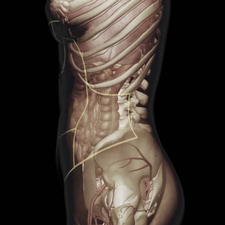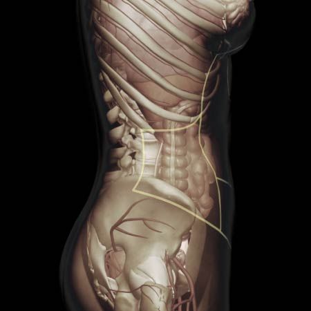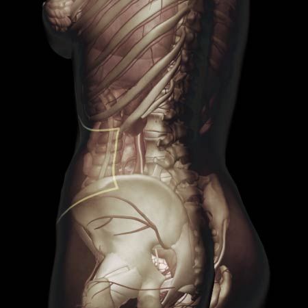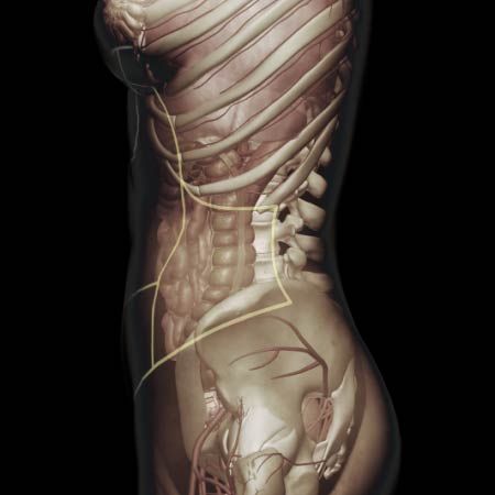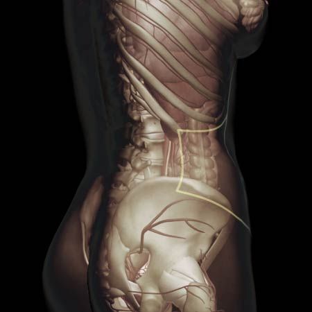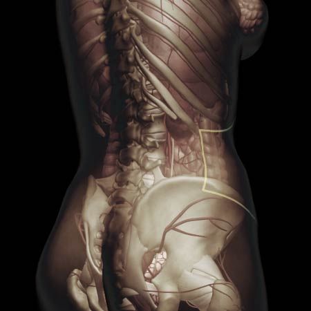 Acute onset of abdominal pain, flank pain, low back pain, groin pain