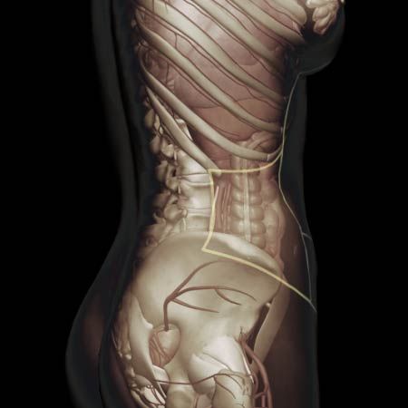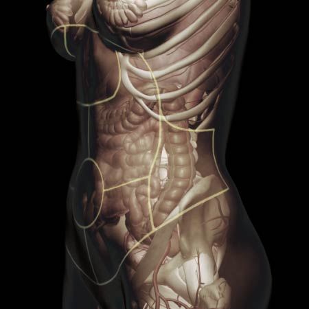 Localized swelling somewhere on the surface of the abdomen or groin