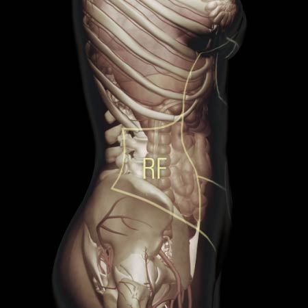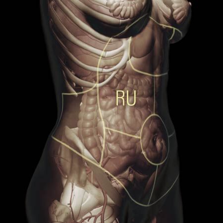 Sharp , intermittent, right upper quadrant abdominal pain