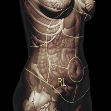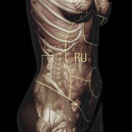 Dull, constant right upper quadrant abdominal pain